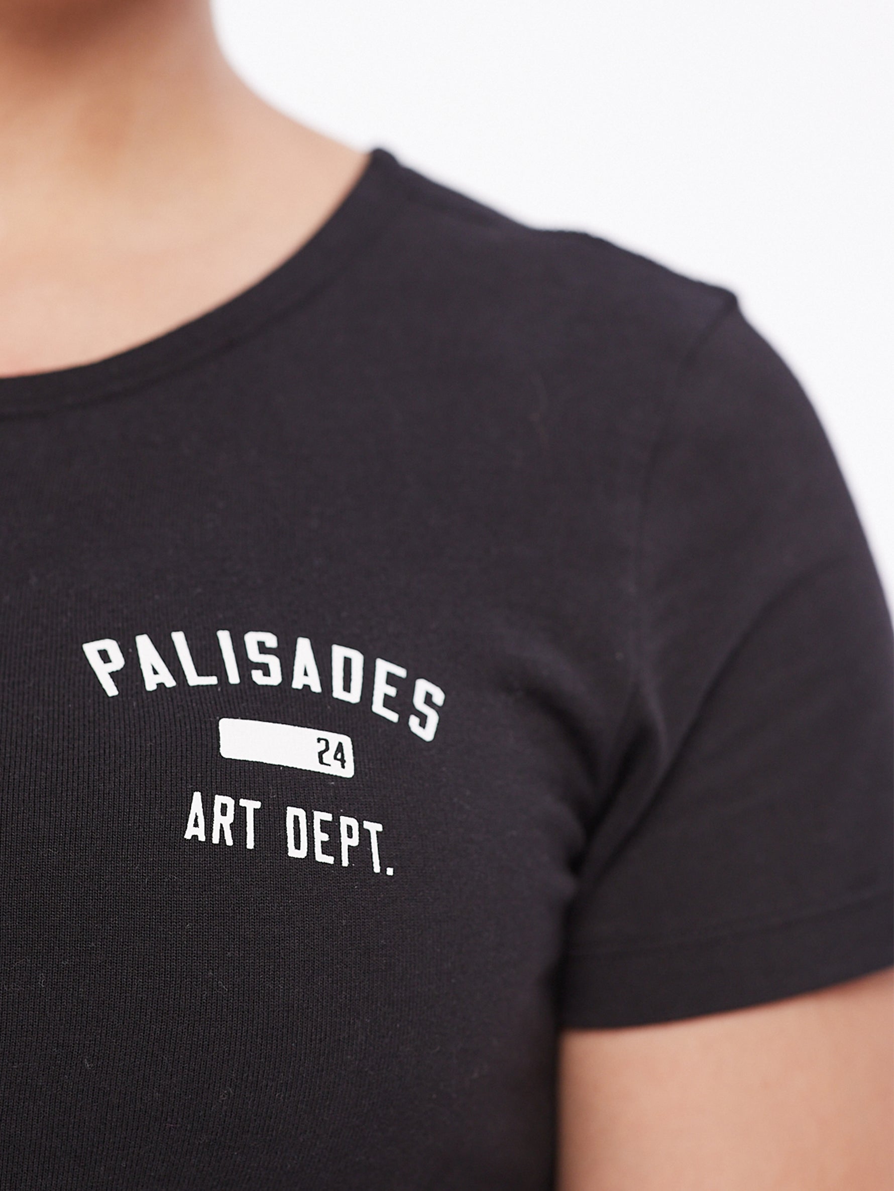 Art Department Palisades Crop Tee is designed for those who love a perfect fit and effortless style. This crop tee for women is crafted from soft, lightweight Pure Cotton fabric with a touch of elastane, ensuring comfort and flexibility. Whether you're looking for a black crop tee or stylish crop tee activewear, this crop basic tee is ideal for casual outings or workouts. Experience premium quality with the exclusive Palisades label.
